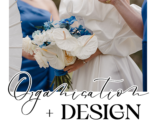 - Création d’une ligne directrice visuelle adaptée à vos envies puis coordination avec votre wedding designer / fleuriste / décorateurs / loueurs pour votre moodboard.